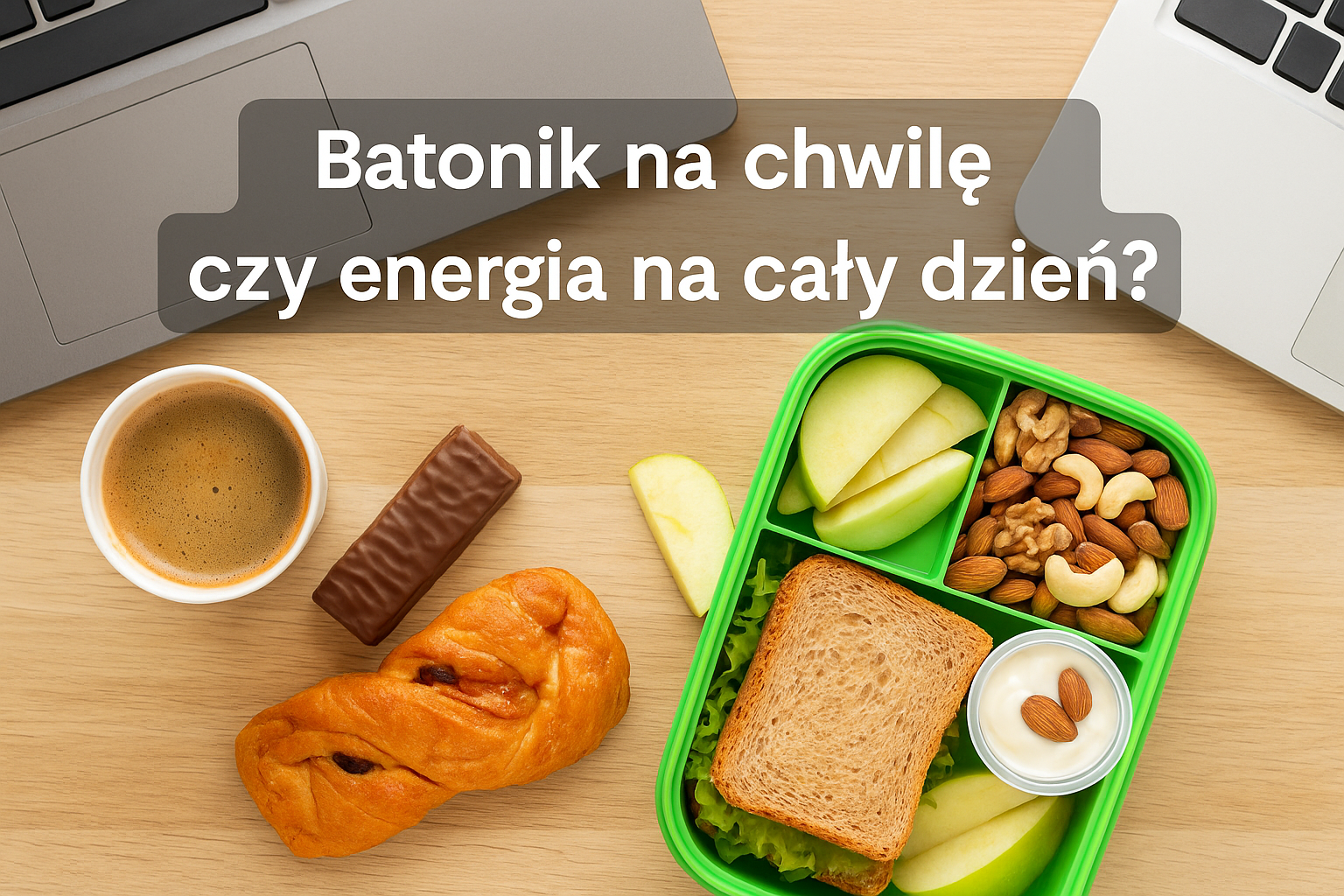 W pracy często sięgamy po to, co szybkie i łatwo dostępne – batonika z automatu, drożdżówkę z pobliskiej piekarni czy słodki jogurt. To przekąski, które mają zaspokoić głód „na szybko” i dodać energii. Niestety, ich efekt bywa krótkotrwały – a po chwili znów czujemy się zmęczeni i głodni. Na szczęście coraz więcej osób zaczyna szukać zdrowszych rozwiązań, które nie tylko dobrze smakują, ale też pomagają utrzymać energię i koncentrację przez cały dzień. Czy da się jeść smacznie, zdrowo i bez dużego wysiłku – nawet w pracy? W tym artykule podpowiadamy, co warto zabrać do pracy zamiast batonika i drożdżówki, by czuć się lepiej, jeść świadomiej i zadbać o swoje zdrowie – krok po kroku.
